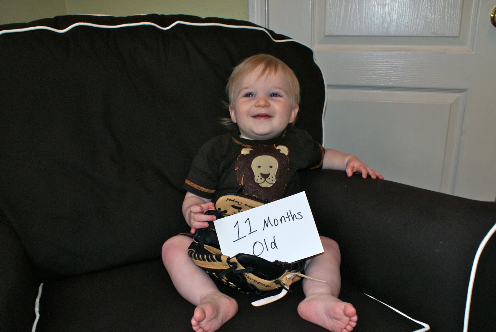 Lately, Griff is into shutting all kinds of doors, and often "helps" me load the dishwasher by shutting the door when its full. More than once, he has shut himself in a room or closet and then complains that he can't get out :) He also likes to play peek-a-boo by holding a blanket over his head and waiting for you to say "Where's Griffin?" Last, but not least, he's walking full time now!!! I mentioned last month that he was trying it out, but Ryan declared it official when Griff was able to stand up and walk off without any support. He really enjoys practicing this new skill, but he was a "loud" crawler, so I'm still surprised to turn around and see him standing right behind me sometimes.